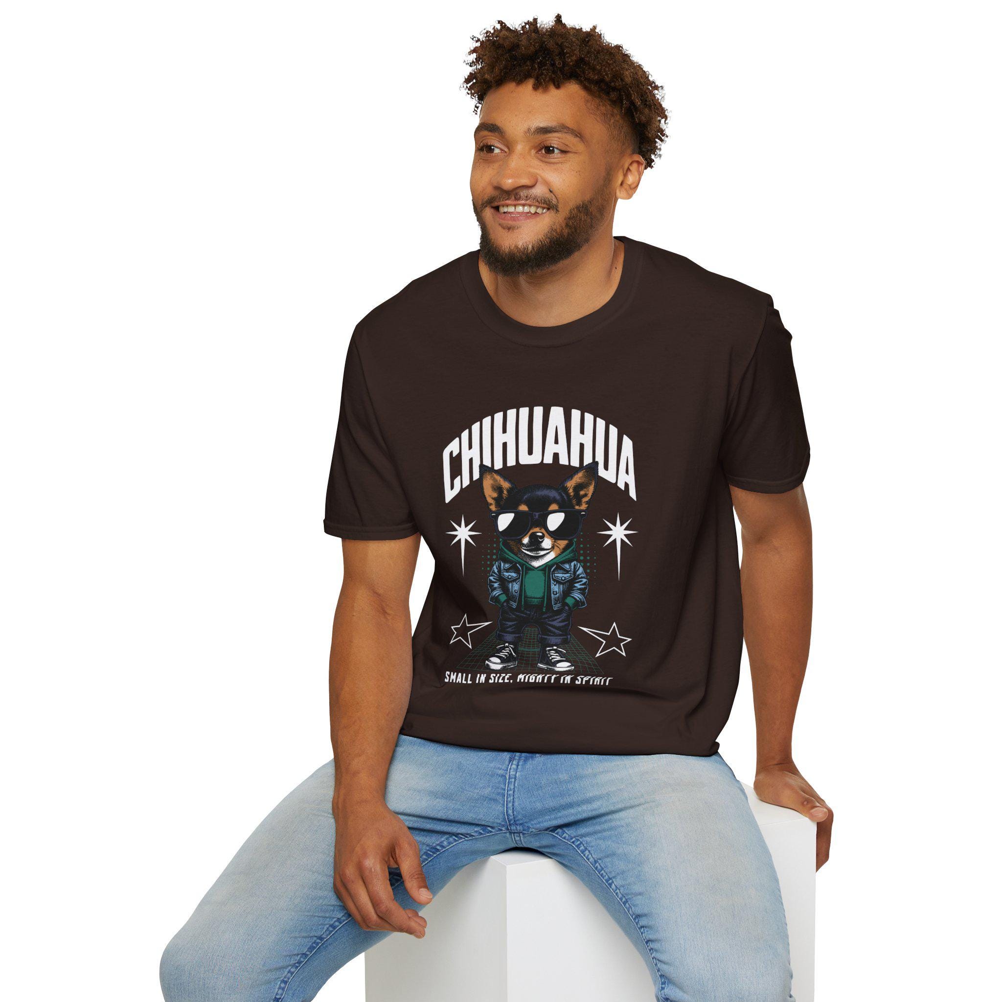 This playful Unisex Softstyle T-Shirt celebrates the spirited chihuahua with a vibrant design that exudes fun and personality. Perfect for dog lovers and anyone with a great sense of humor, this shirt adds a light-hearted touch to any wardrobe. Its classic fit makes it suitable for various occasions—whether you’re hanging out with friends, enjoying a casual day out, or even lounging at home. Ideal for gifting on special occasions like birthdays and just-because moments, it’s a versatile addition to daily wear that effortlessly complements any style. With its cheerful vibe, the t-shirt is sure to bring smiles to you and those around you.