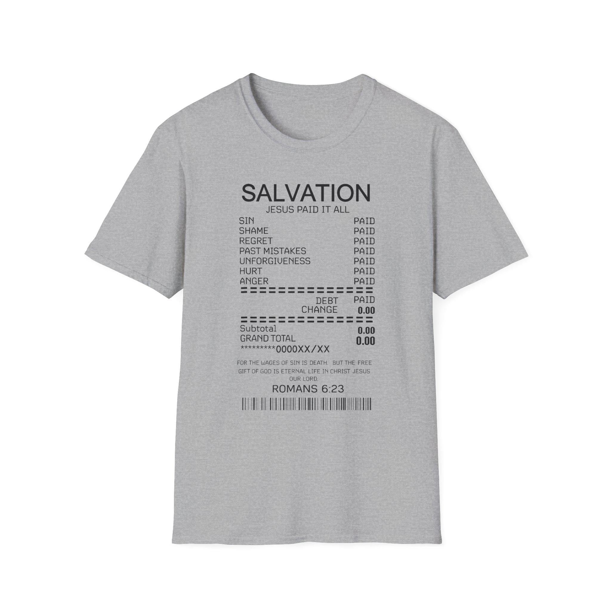 This lightweight crew tee carries a quiet, faith-forward message printed like a receipt across the chest — a simple declaration that past debts have been settled. Soft, breathable cotton drapes cleanly over the body, while the minimalist monochrome print reads like a personal reminder you can wear anywhere: small group nights, church gatherings, or everyday moments when you want to start conversations without shouting. The slim crew neckline and classic fit keep the look understated and easy to layer. It feels like something you’d reach for on a slow morning, a dependable piece that speaks gently about grace and gratitude.