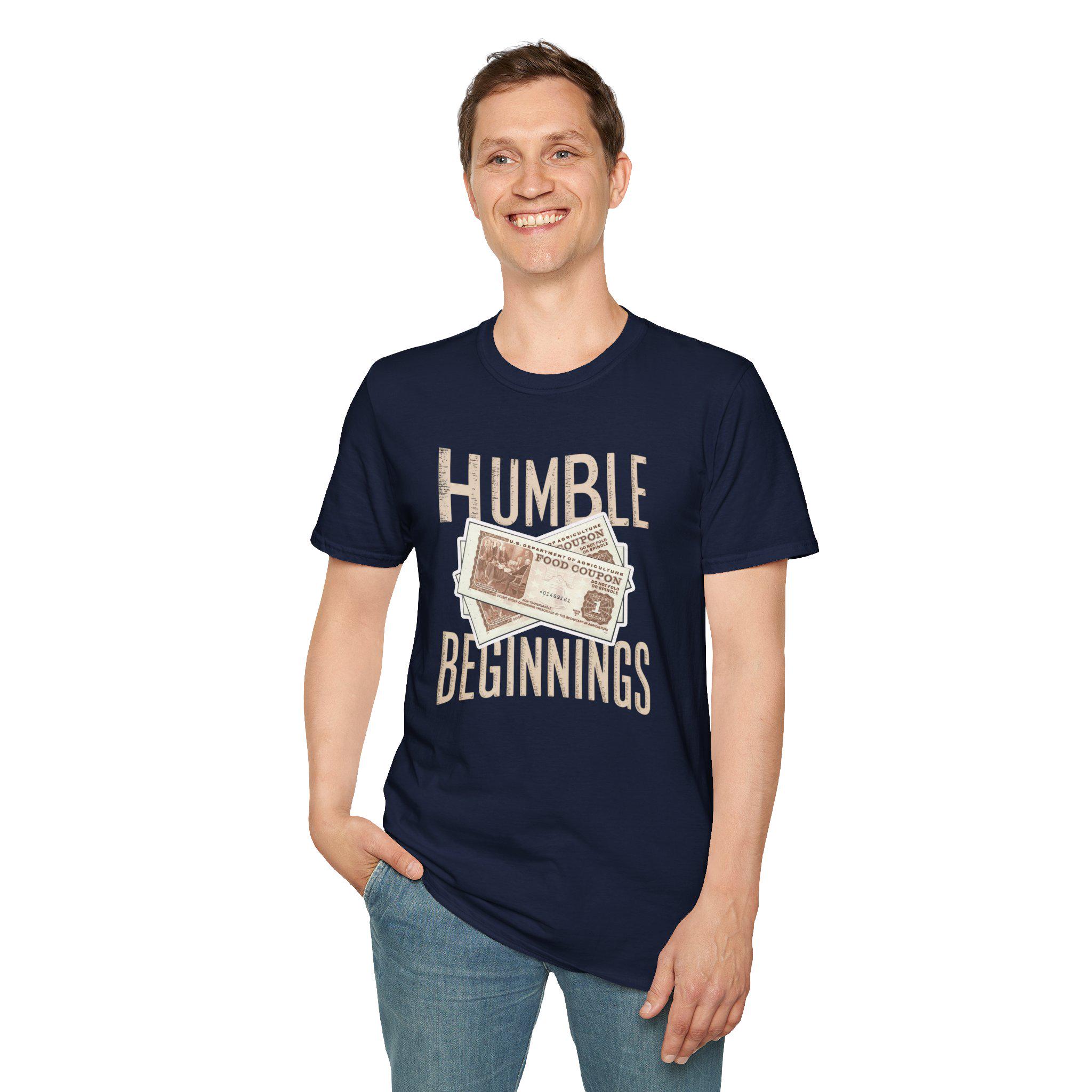 A soft, lived-in tee that quietly tells a story. The vintage-inspired “Humble Beginnings” graphic — faded paper bills layered beneath warm, worn lettering — feels like a nod to small starts, grit, and earned pride. Lightweight ring-spun cotton drapes easily and breathes through long days on the move. The crew neck and classic fit create a clean silhouette that layers under jackets or stands alone with rolled sleeves and sneakers. Wear it on days when you want to remember how far you’ve come, to celebrate slow wins, or to keep things grounded at casual meetups and milestone moments.