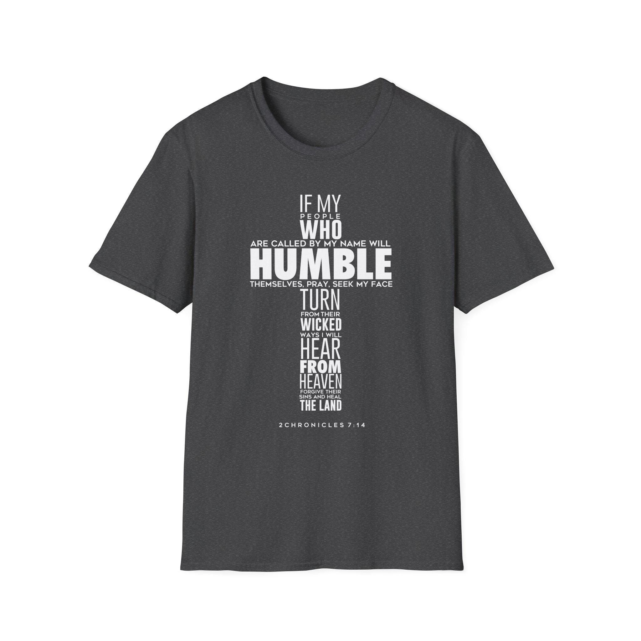 Simple, quiet strength on a soft black tee. This lightweight cotton shirt wears like a familiar friend — breathable, smooth, and comfortable from morning coffee to evening prayers. The front carries a bold typographic cross made from a short Scripture passage; the layout feels like a whispered reminder to live with humility and hope. It sits cleanly under a jacket or stands alone with jeans, lending a subtle, faith-forward voice without shouting.