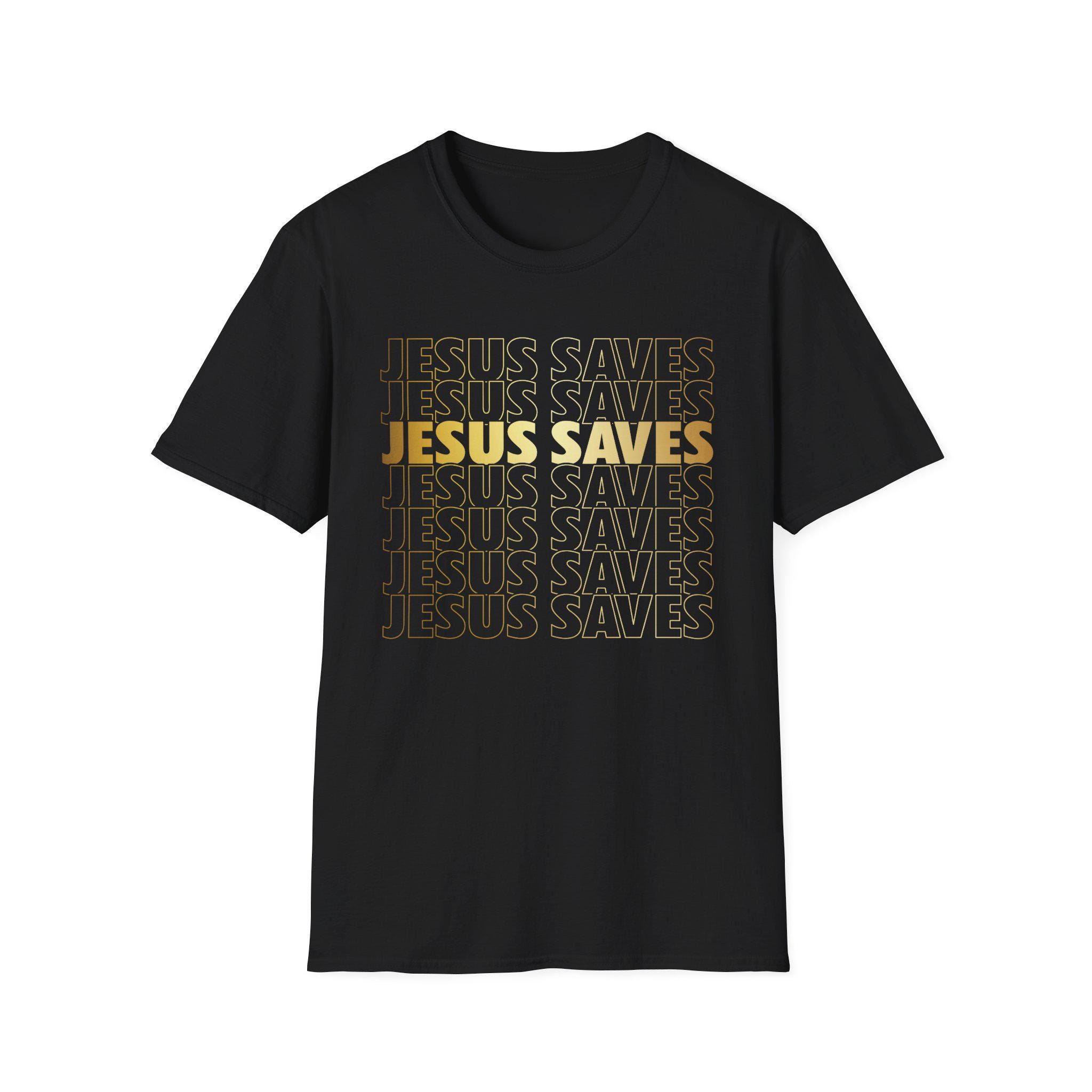 A lightweight, comfortable tee that wears like a quiet declaration. The soft ring-spun cotton drapes easily while the bold repeated “JESUS SAVES” graphic—highlighted with a warm gold stripe—reads like a steady reminder in everyday moments. It sits cleanly at the crew neckline and keeps shape thanks to ribbed stitching and shoulder tape. Wear it layered under a jacket for Sunday gatherings, or fold it into casual rotation for outreach events and community meetups. The muted repeat print feels modern and intentional, speaking faith with subtlety and strength rather than loud proclamation.
