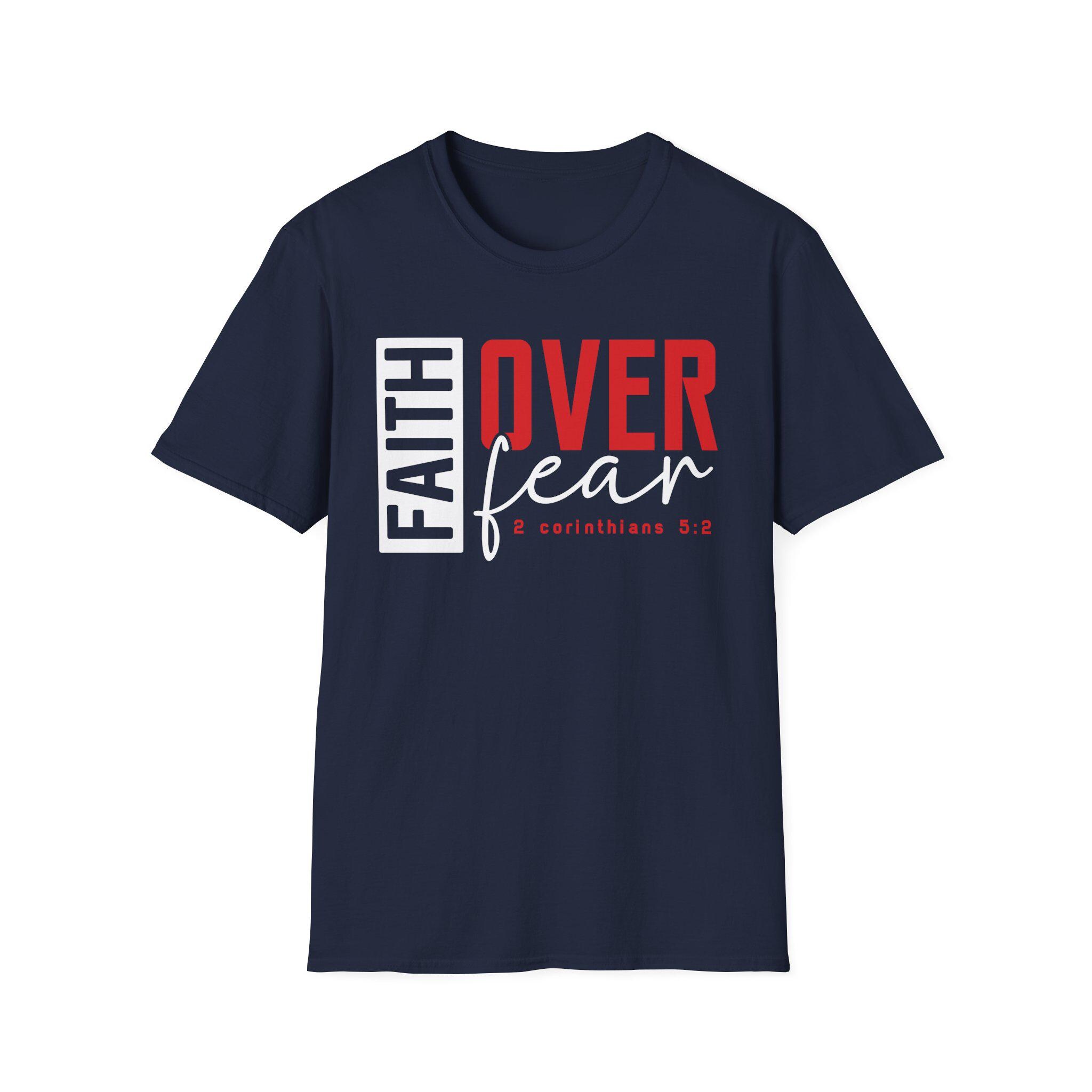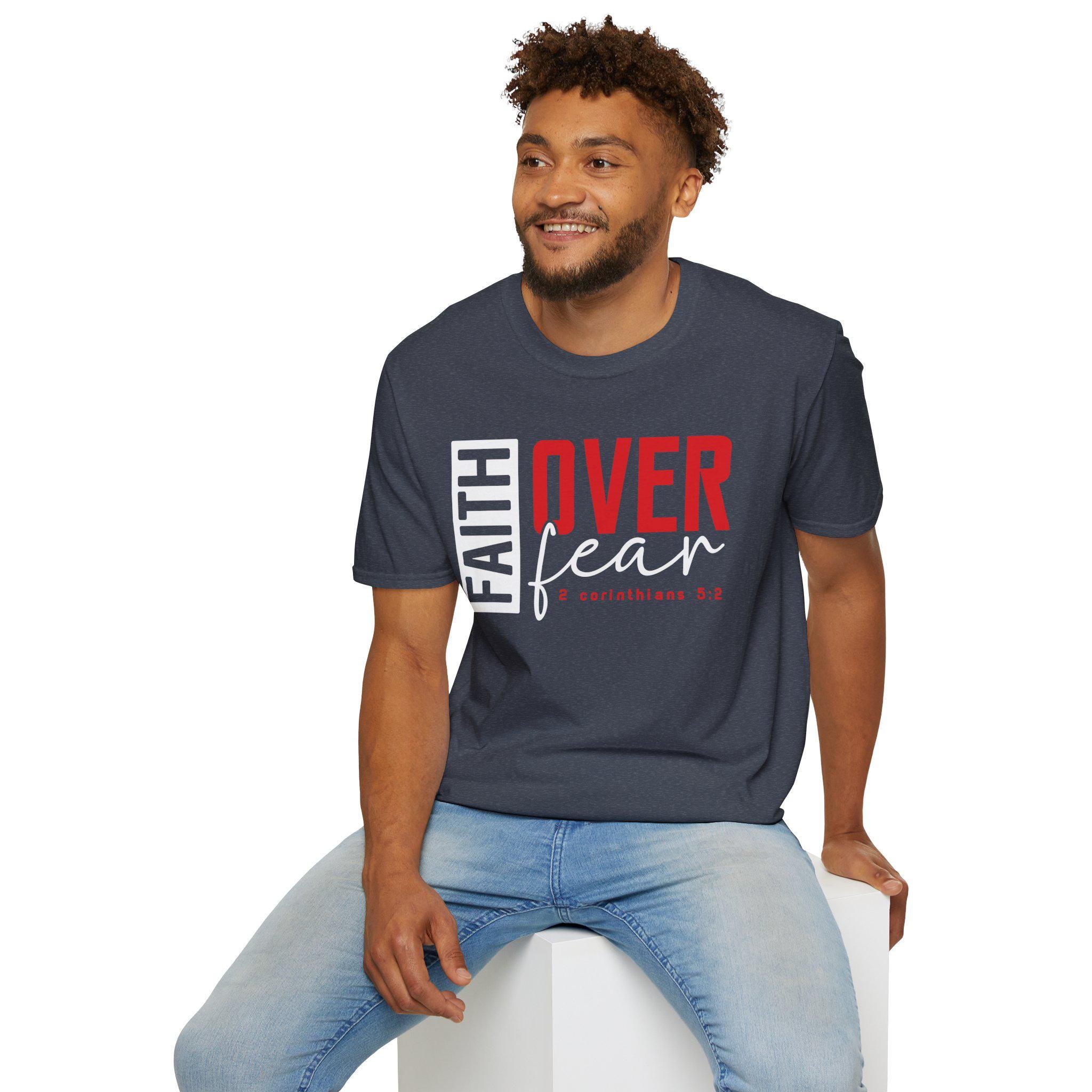 A soft, everyday tee that speaks faith out loud. Bold block lettering reads “FAITH OVER fear” with a modern mix of strong red and clean white typography, so the message catches eyes without shouting. The lightweight ring-spun cotton feels smooth against skin and layers easily under hoodies or jackets. Wear it to church meetups, small group nights, mission trips, or while running errands — it settles into the rhythms of real life and quietly reminds you (and others) where your courage comes from. The cut is a classic crew fit with a tear-away label for comfort, and reinforced shoulder tape keeps the shape wash after wash. Finished in deep black for high contrast, this shirt carries a confident, faith-forward vibe that fits into casual wardrobes and worship moments alike.