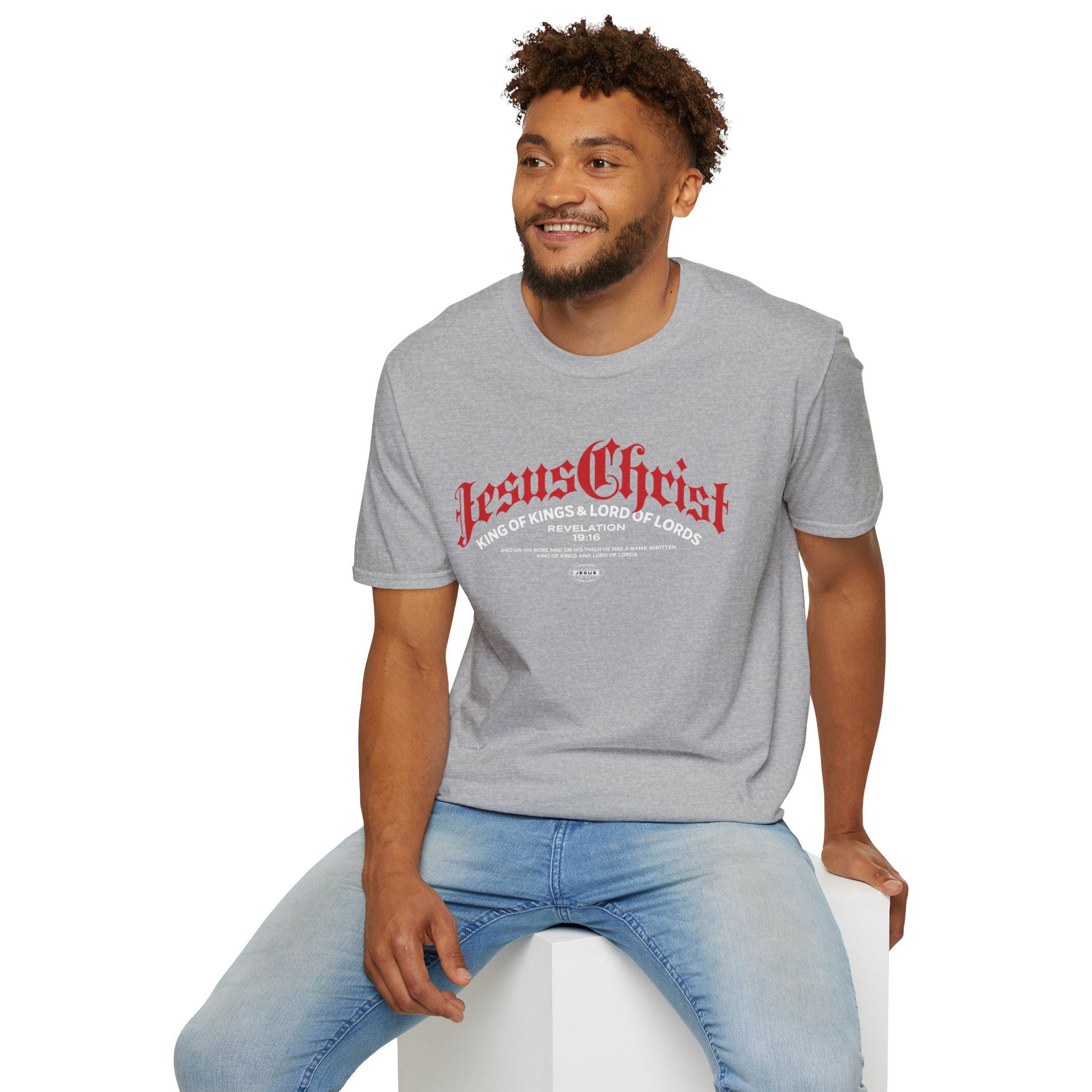 A clean, soft black tee that pairs bold, vintage-inspired lettering with a subtle devotional message. The shirt feels lightweight against the skin and drapes simply, so the red Gothic-type headline and white subtitle sit front-and-center with low fuss. Wear it to worship nights, casual meetups, or layered under a jacket for evening outreach — it reads as both statement and staple. The fabric's smooth hand and classic crew silhouette keep the look approachable while the distressed-style type gives it quiet edge and personality.