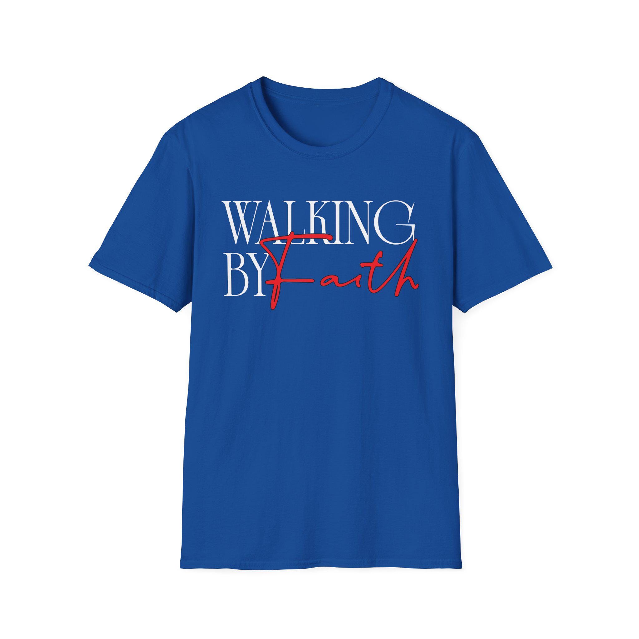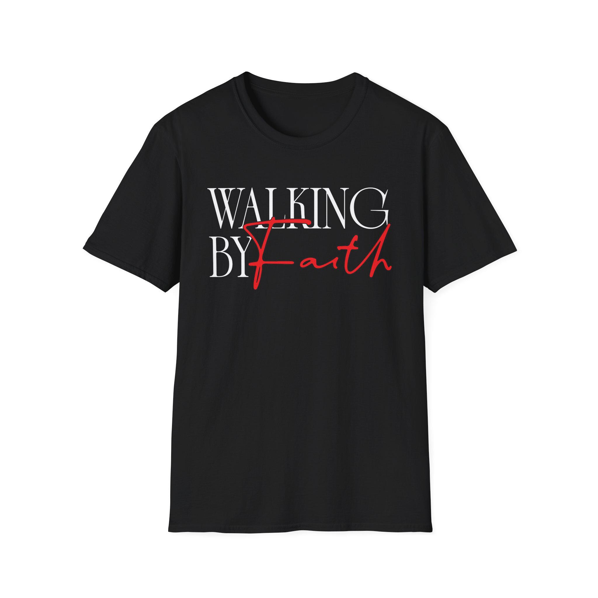 This soft, classic tee carries a quiet, confident message: “Walking by Faith.” The clean serif text paired with a bold, handwritten script in red makes the phrase feel both steady and personal. Wear it to moments of reflection, small-group meetups, or everyday errands — it layers easily under jackets or stands on its own with jeans. The lightweight cotton feels breathable against the skin while the tear-away label and reinforced shoulder tape keep it comfortable through repeated wear. Let this shirt be a simple, wearable reminder of steady steps and quiet courage.